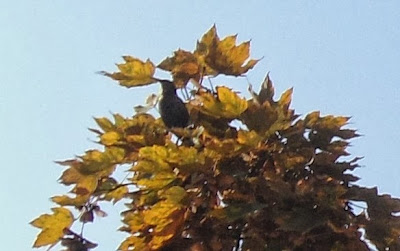 Przedwczoraj, jak zwykle wyszłam raniutko na balkon i zauważyłam stado jakichś niewielkich ptaków buszujących wśród gałęzi klonów. Były tak szybkie, że uchwyciłam tylko jednego i sikorkę. Nie powiem co posyłałam sile tej jakiejś sprawczej, bo mój aparat z zoomem, nie chciał działać, rozładował się akumulatorek. Czyli zostało mi to co zwykle.